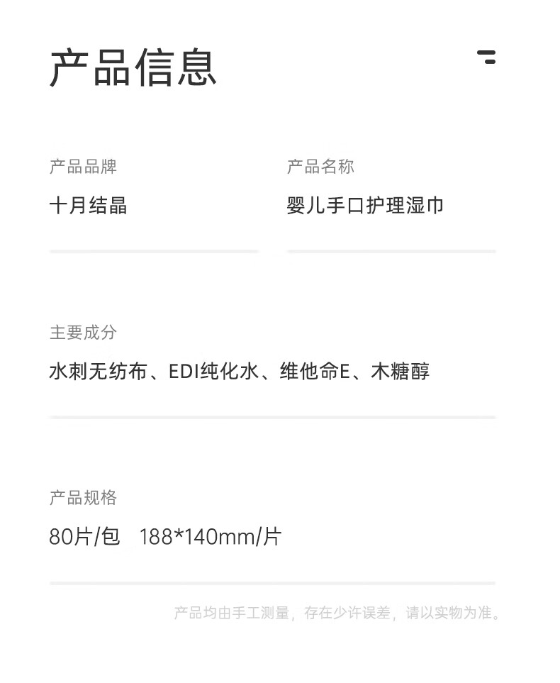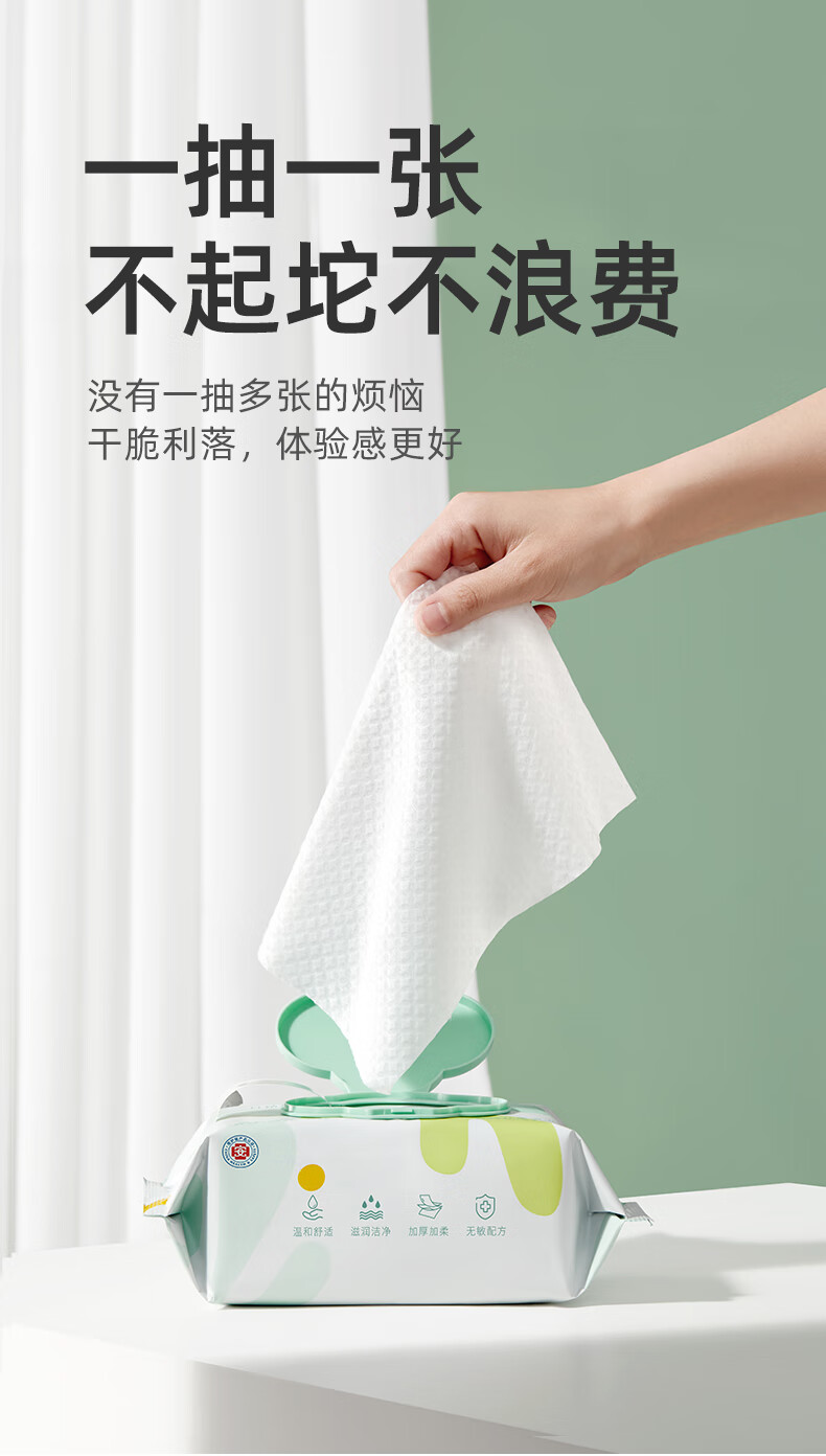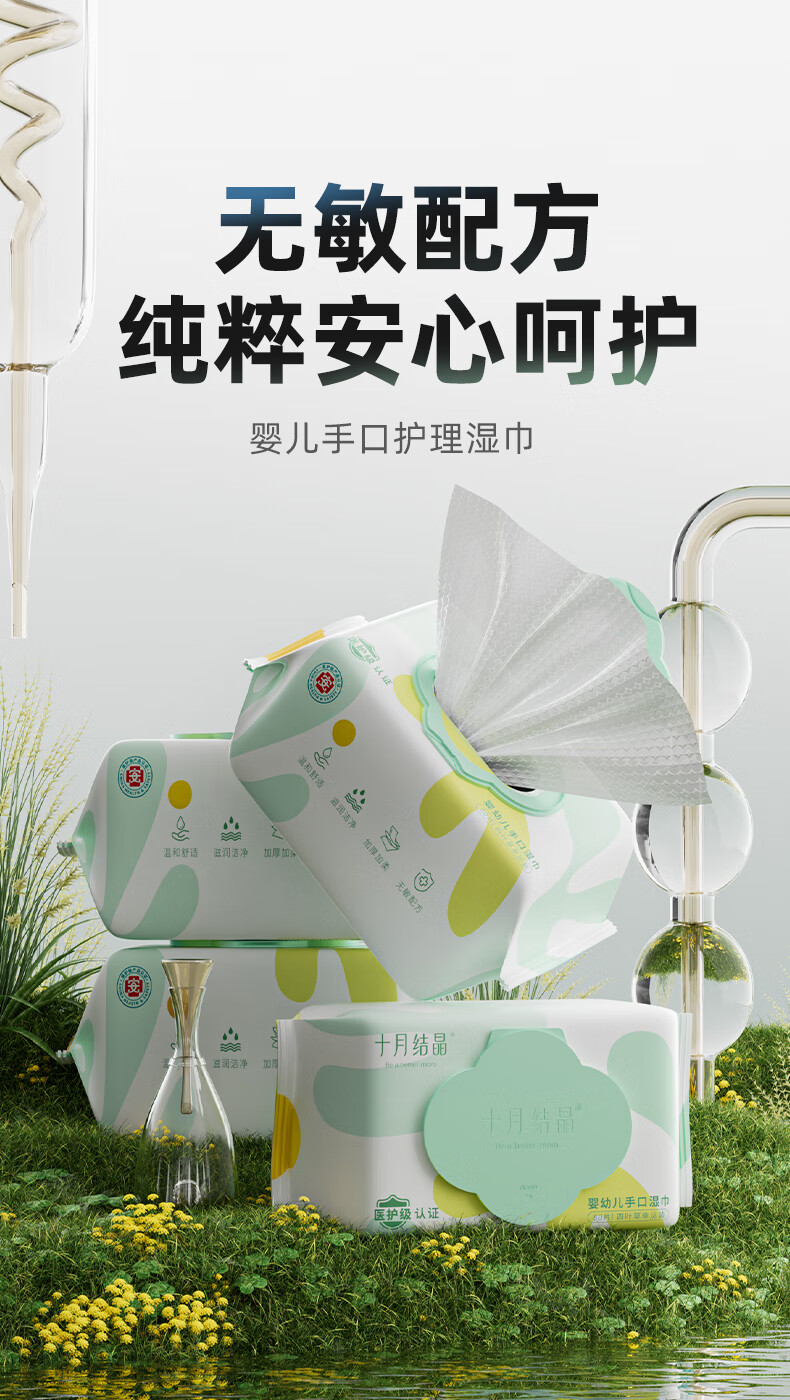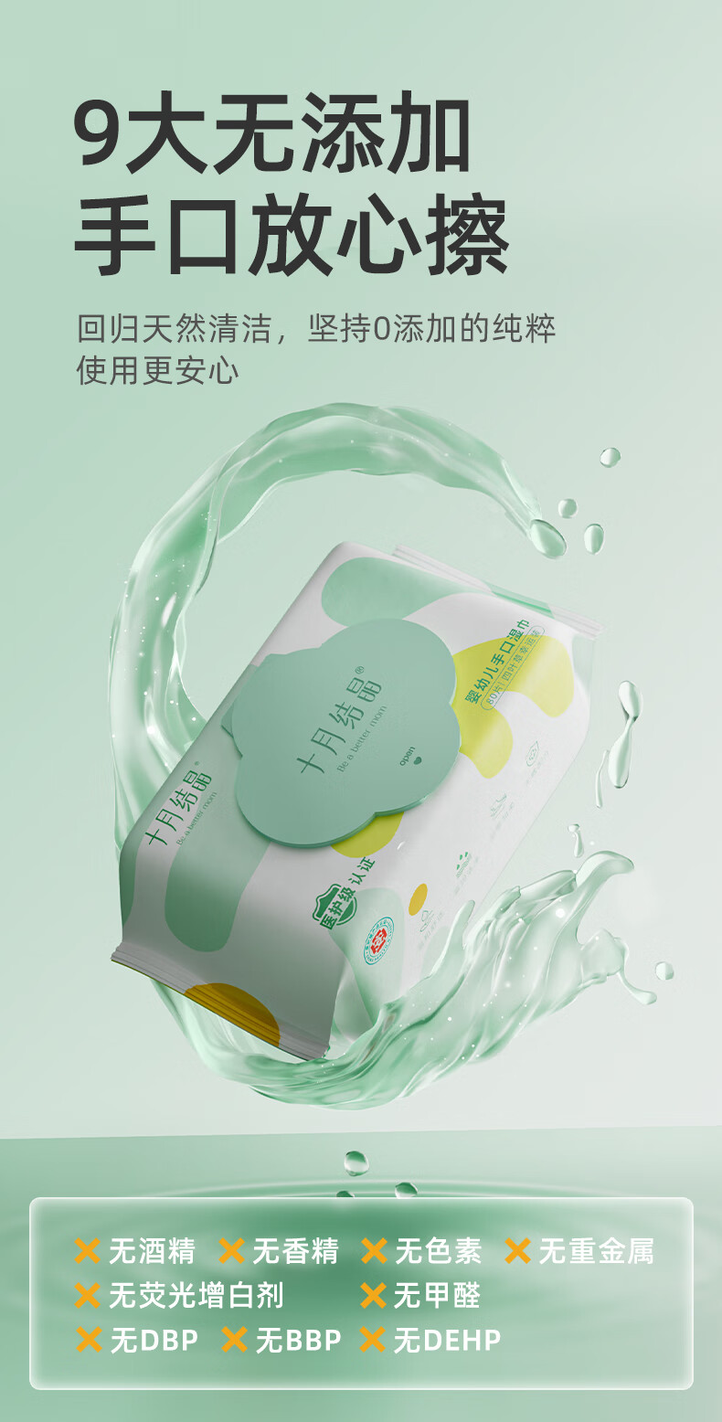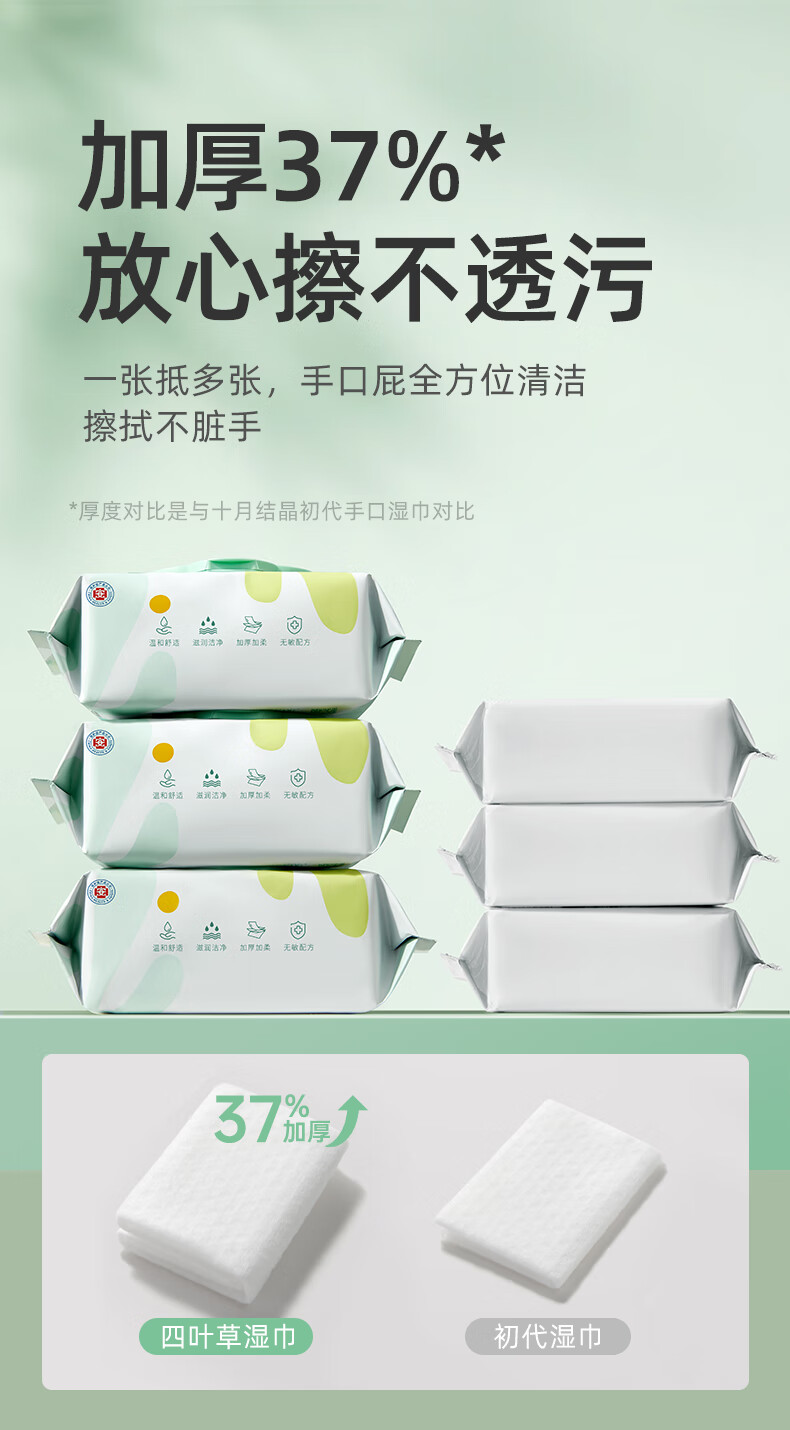 十月结晶婴儿湿巾 80抽*4包新生儿宝宝专用手口湿纸巾加柔加厚滋润洁净