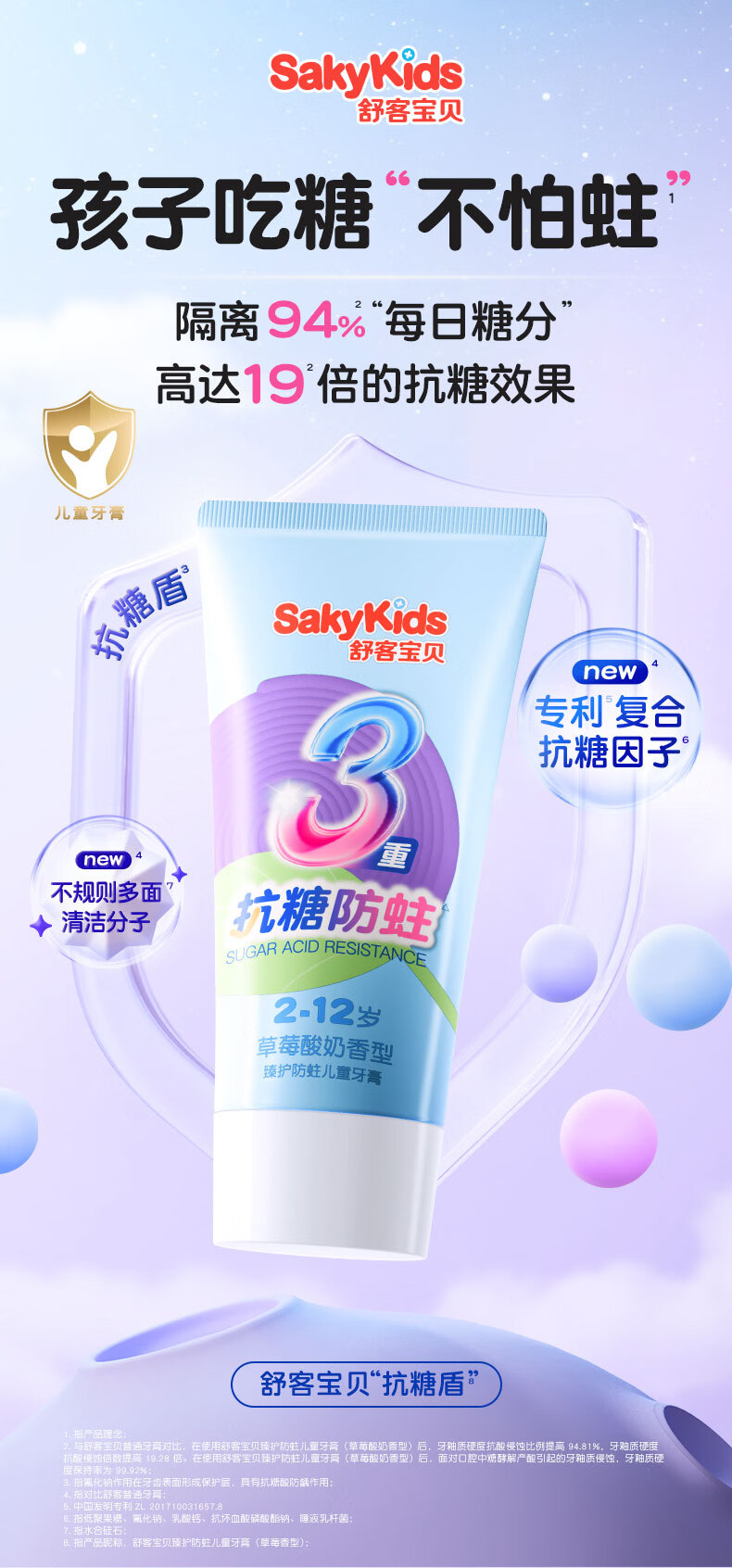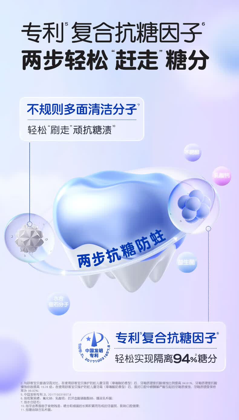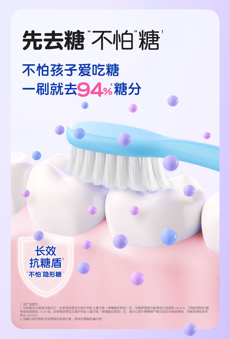 舒客宝贝儿童牙膏抗糖防蛀3-6-16岁含氟青少年换牙期护牙60g3支装草莓味