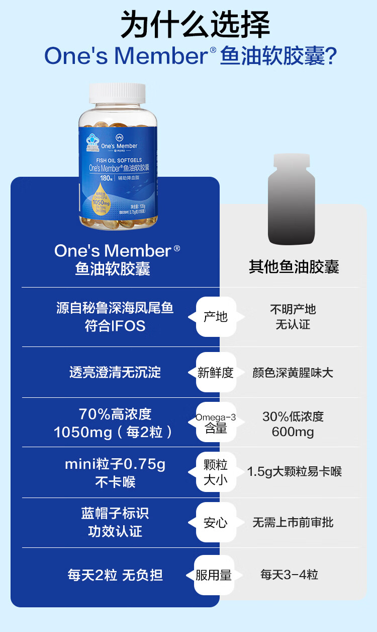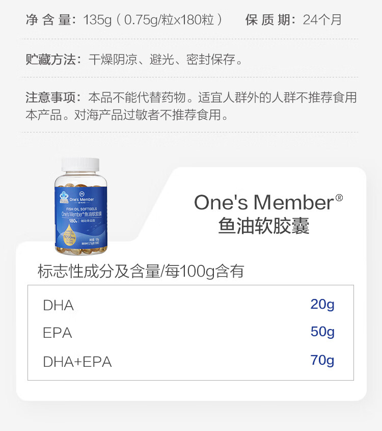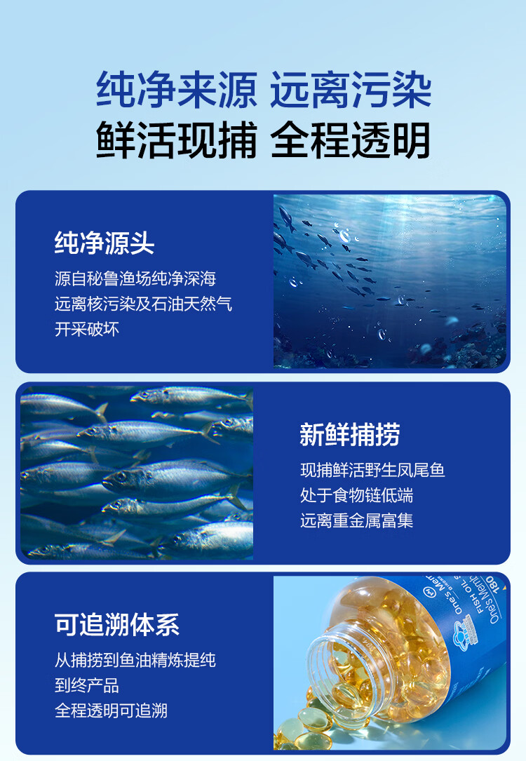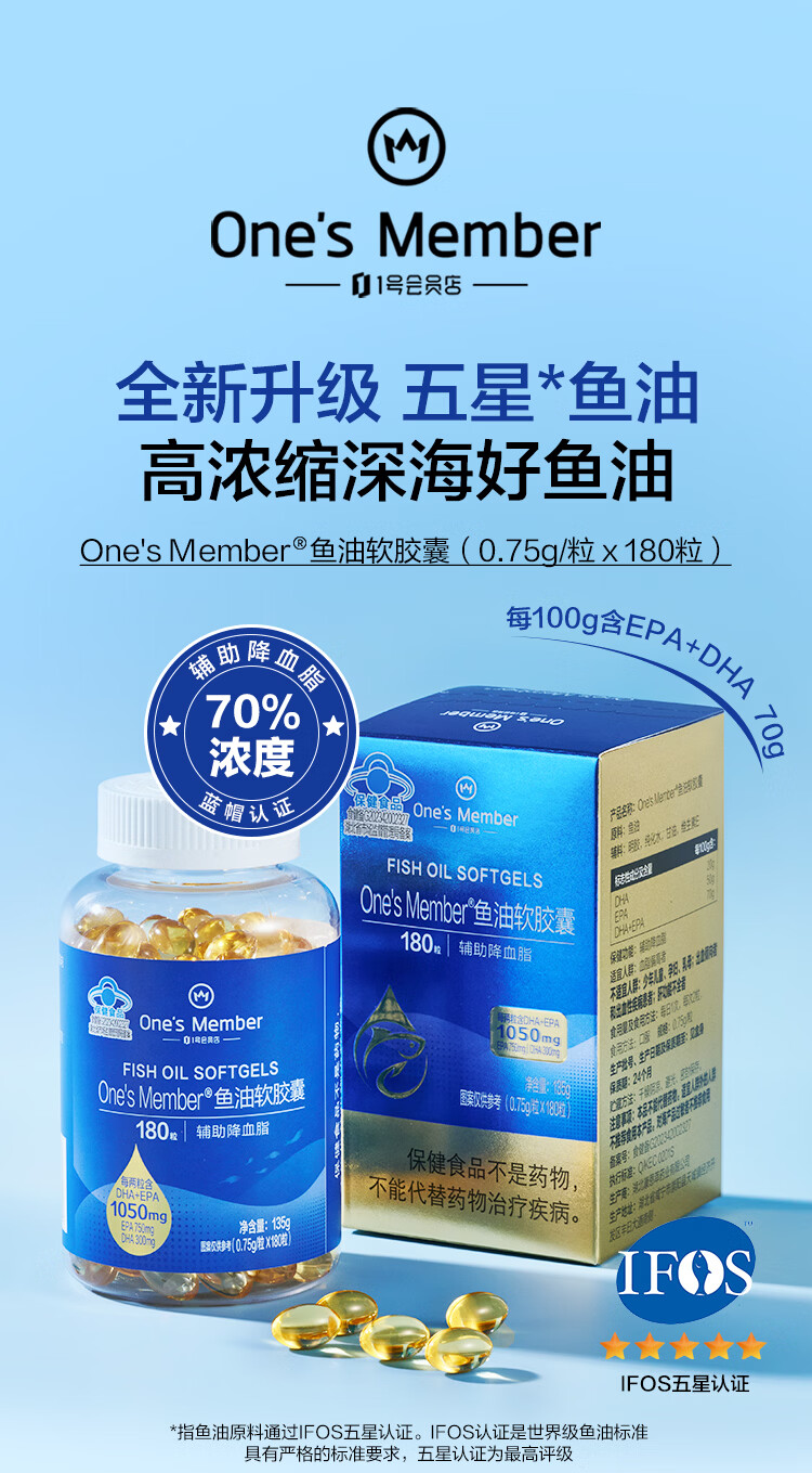 One's Member高纯度omega-3深海鱼油软胶囊180粒 EPA+DHA成人