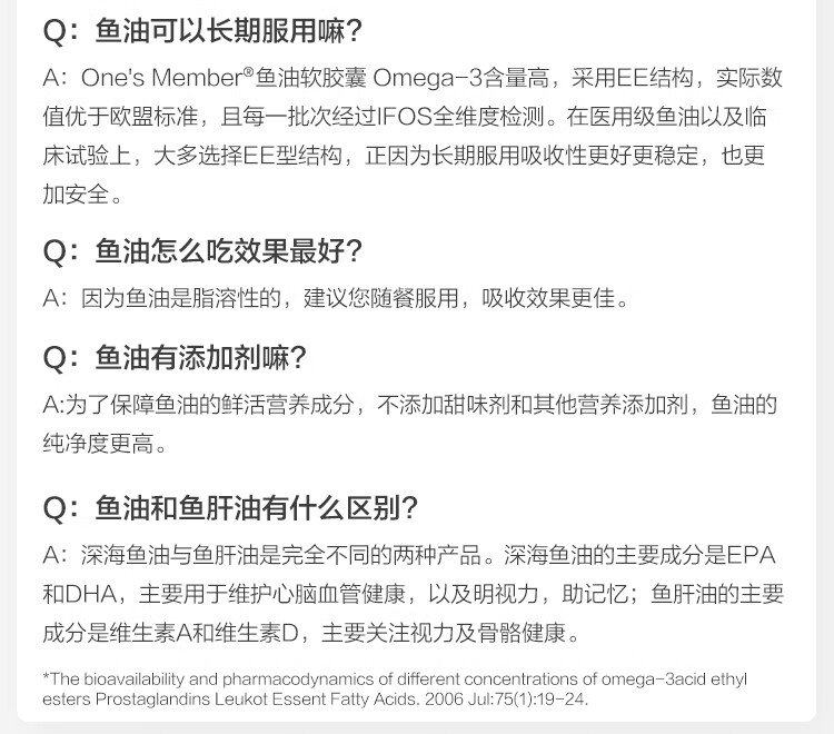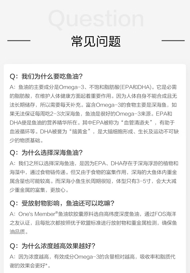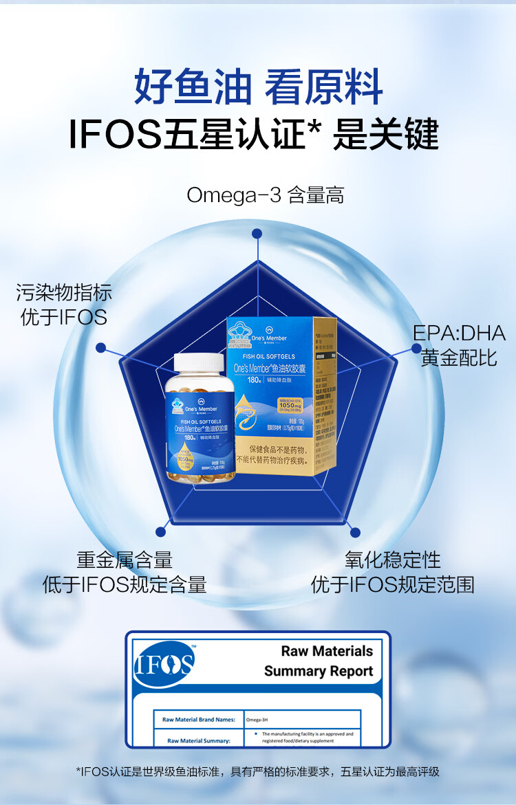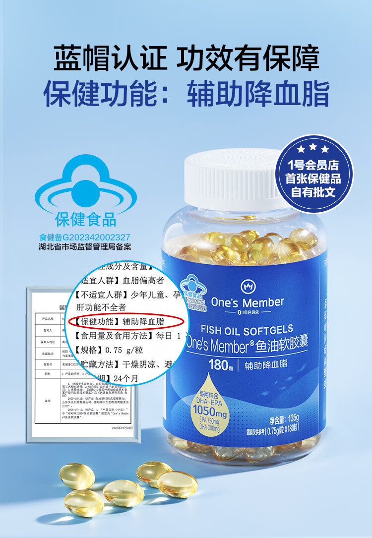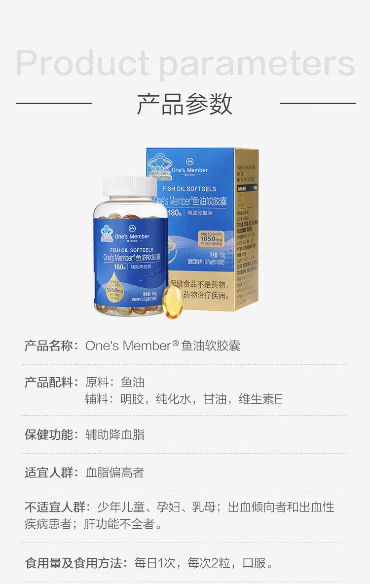 One's Member高纯度omega-3深海鱼油软胶囊180粒 EPA+DHA成人