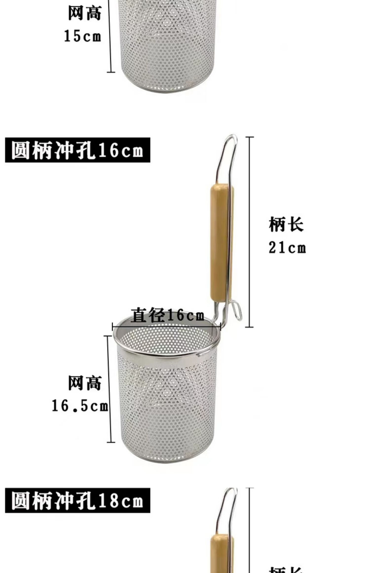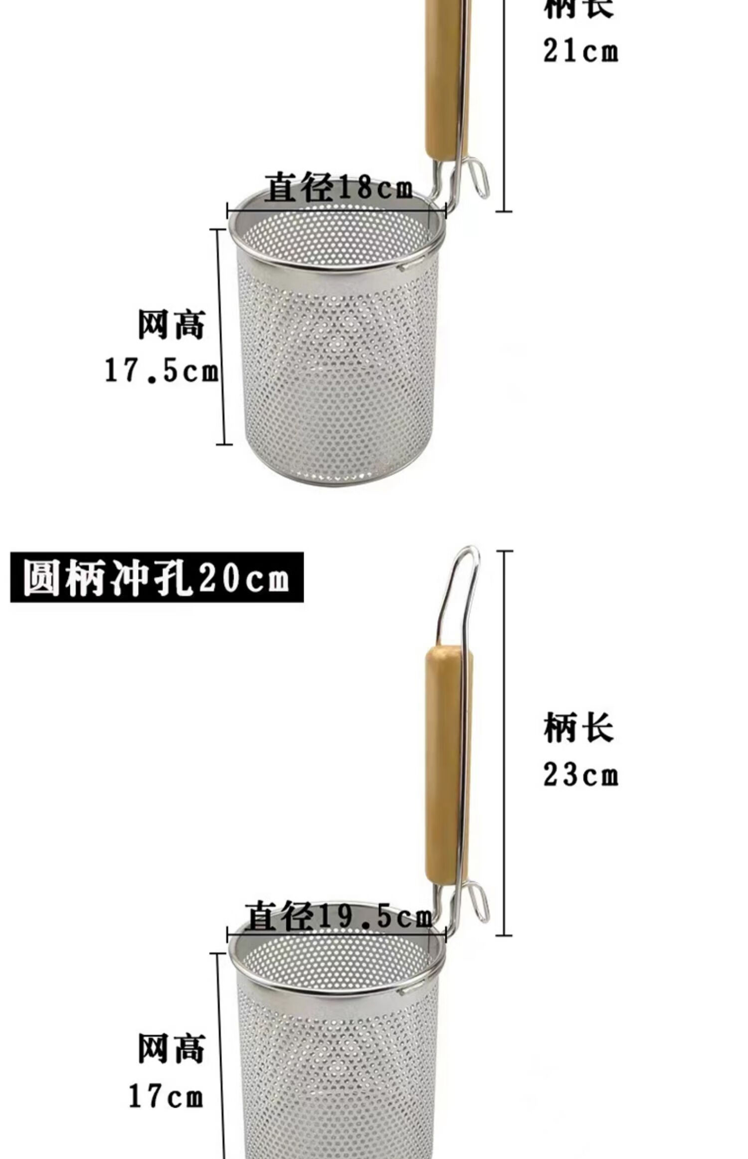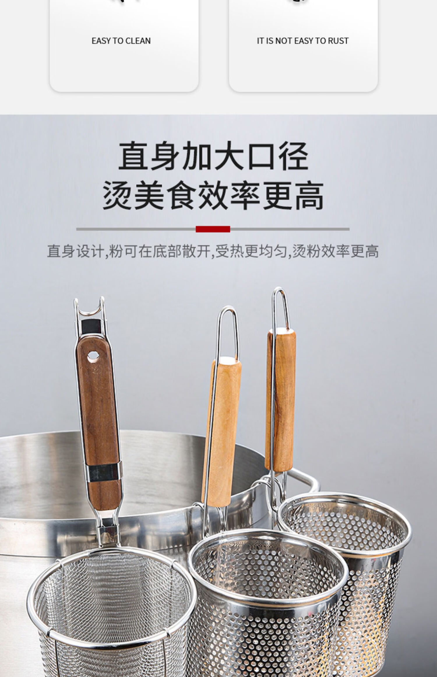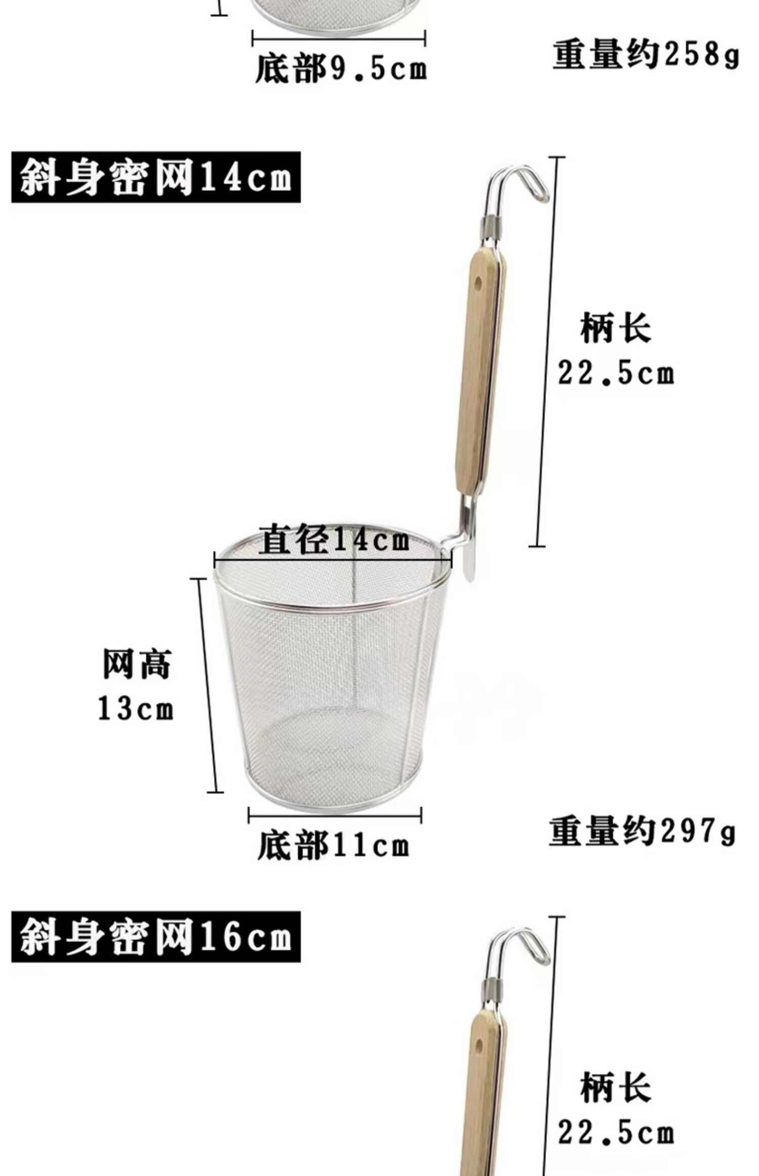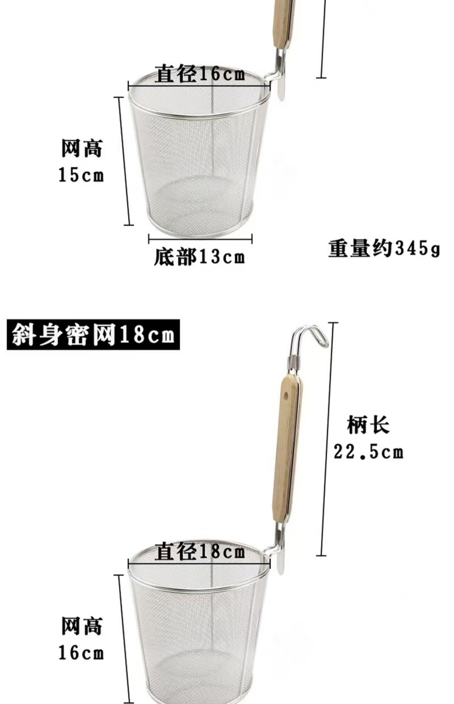 PJ煮面漏网烫菜篓子麻辣烫漏筐不锈钢煮粉漏斗粉篱下面下粉捞 加厚木柄线条粉篱