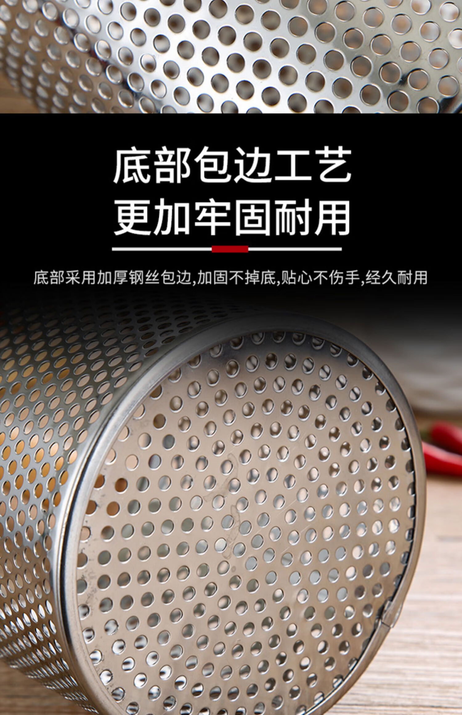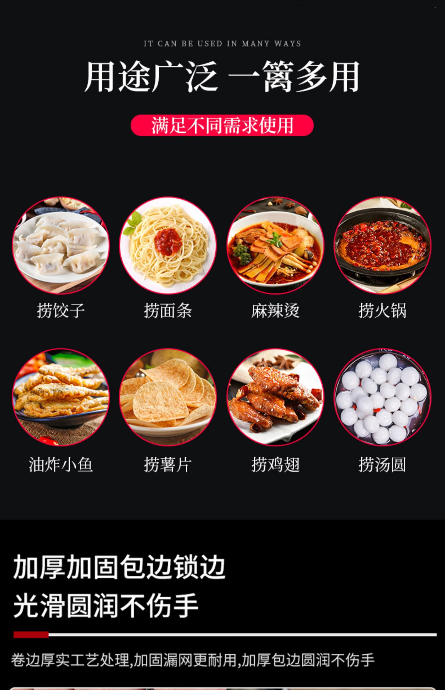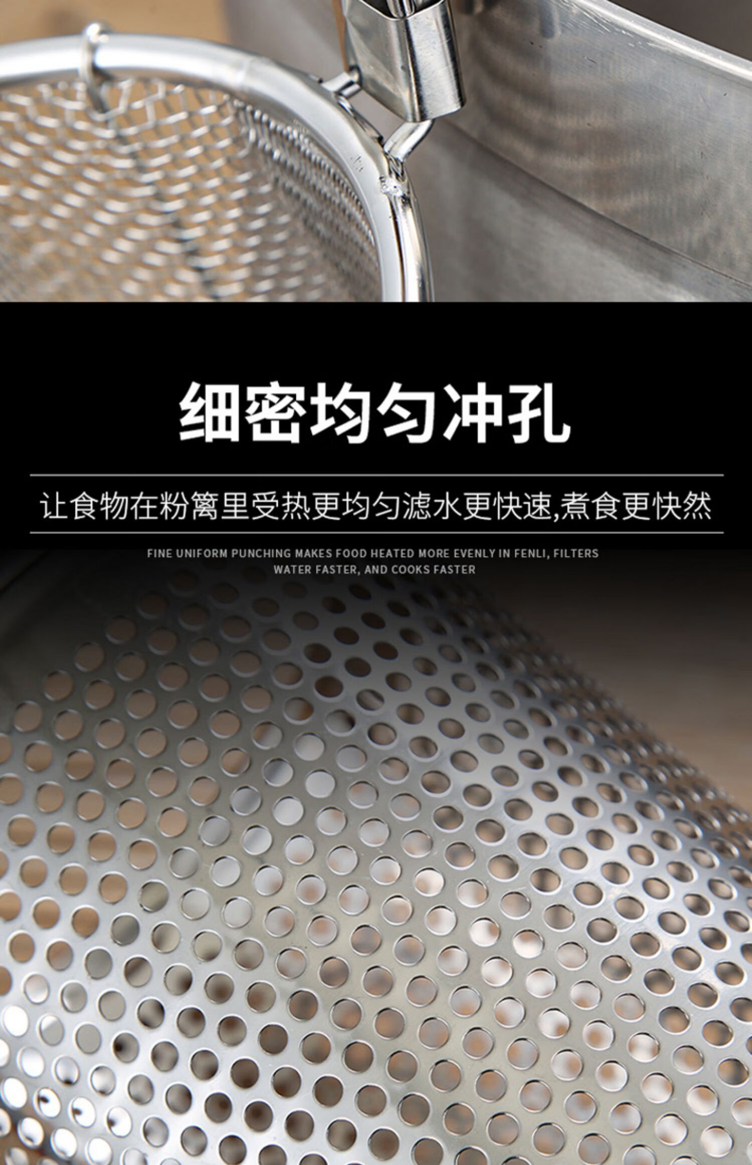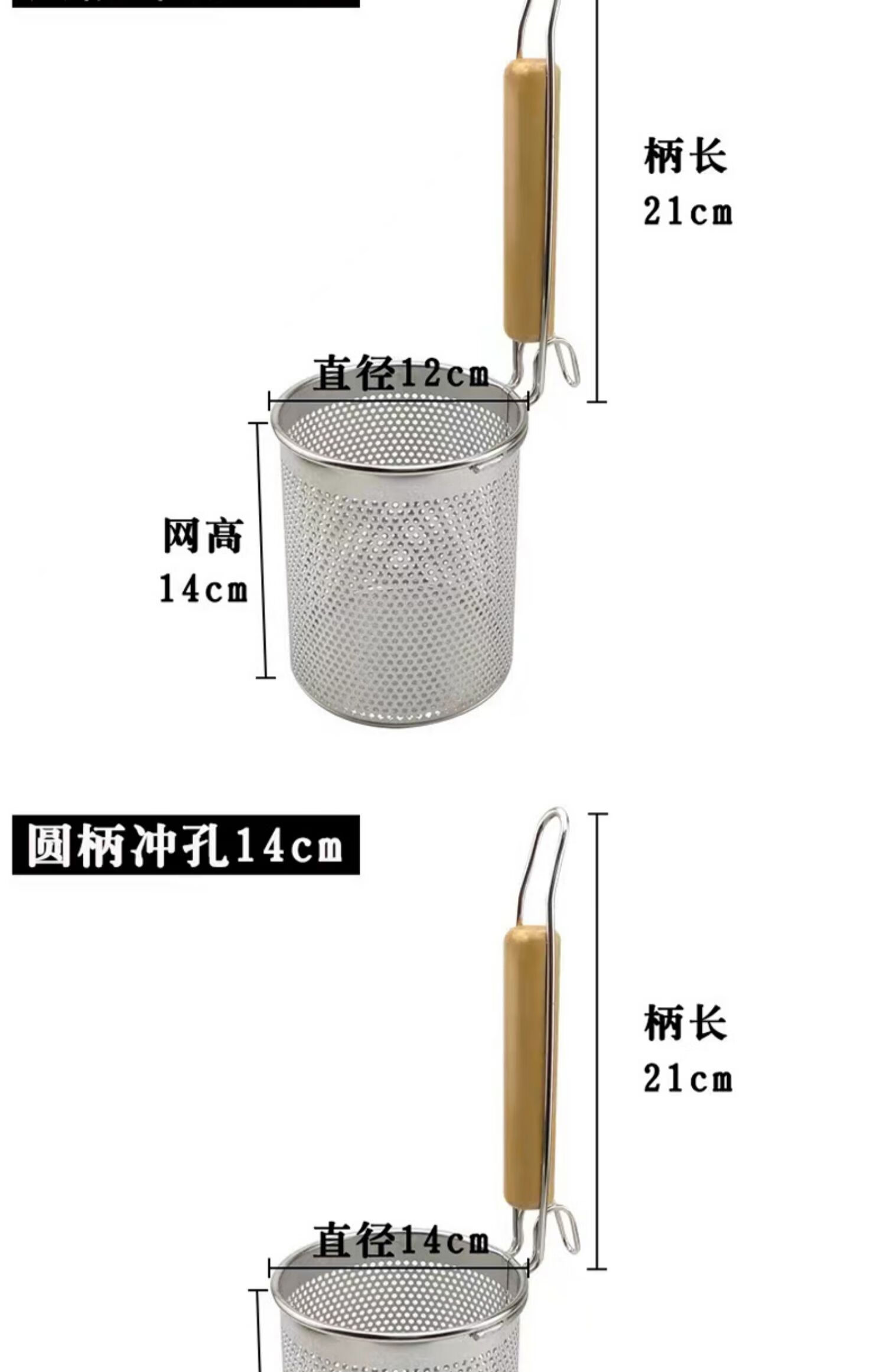 PJ煮面漏网烫菜篓子麻辣烫漏筐不锈钢煮粉漏斗粉篱下面下粉捞 加厚木柄线条粉篱
