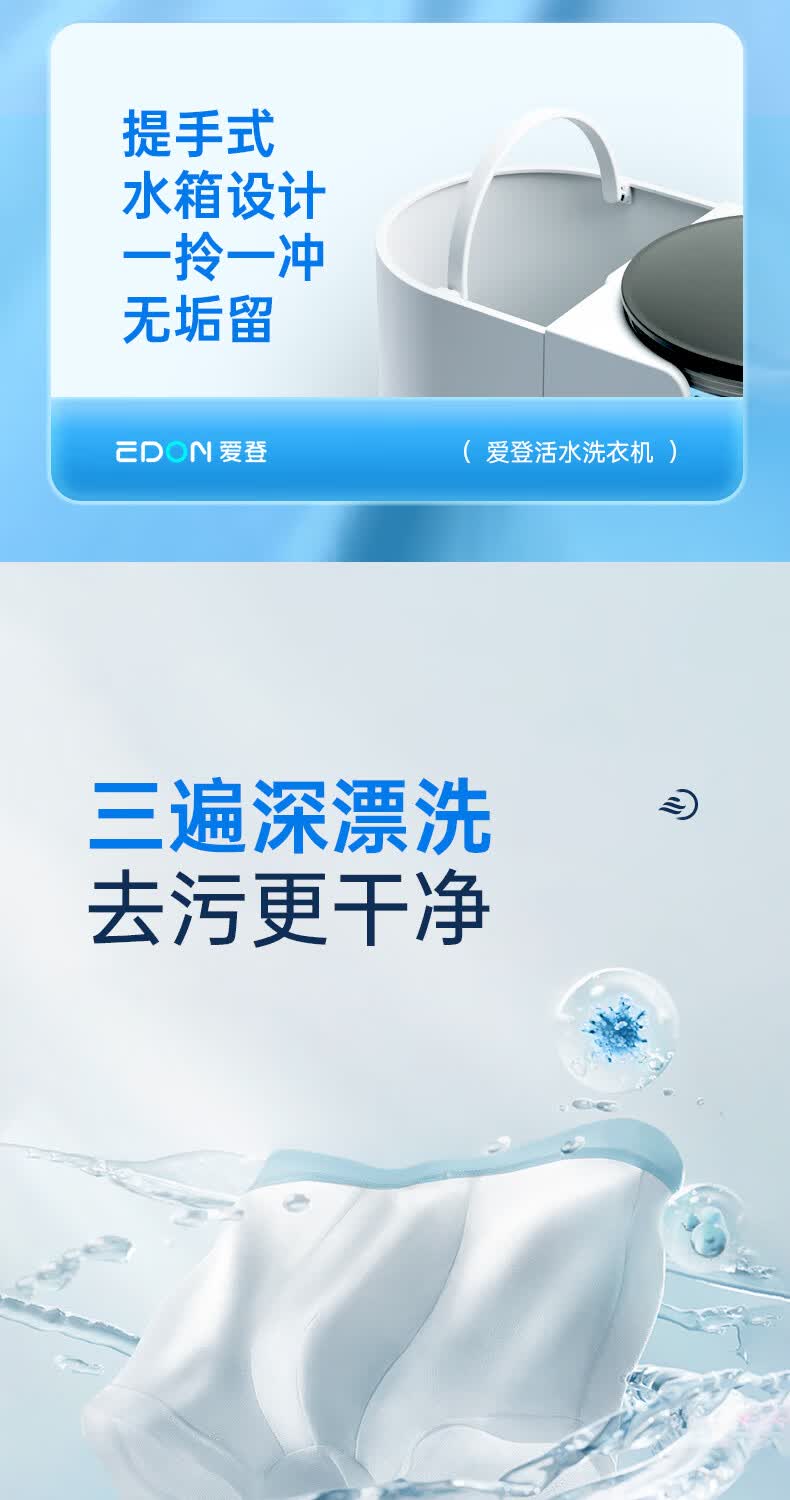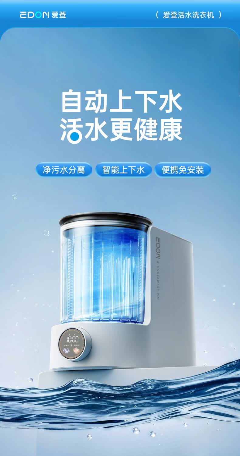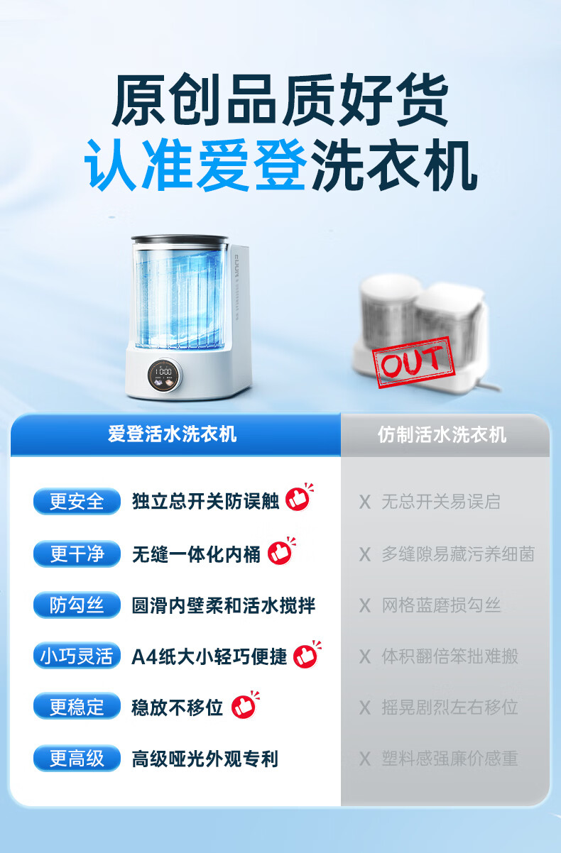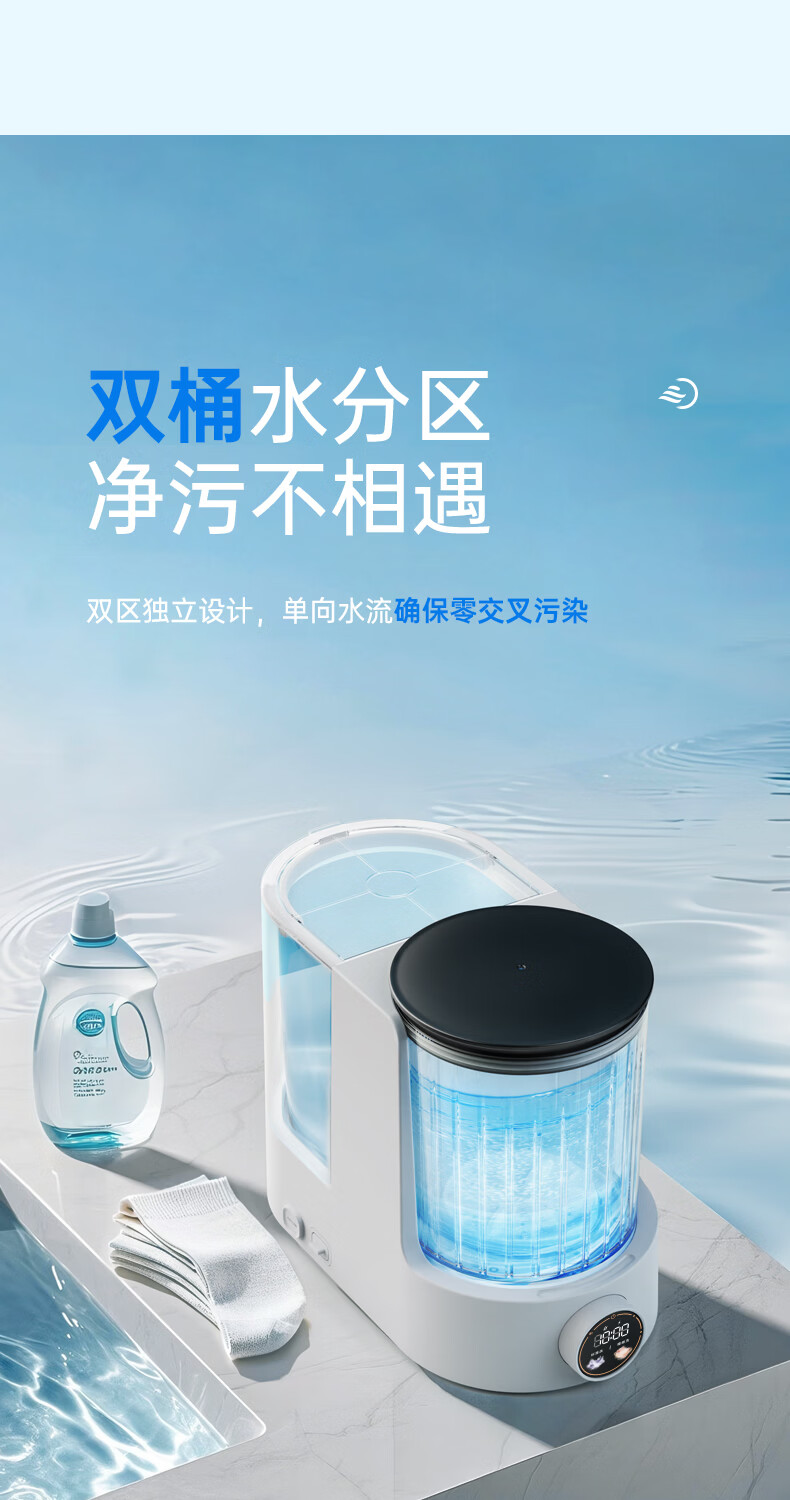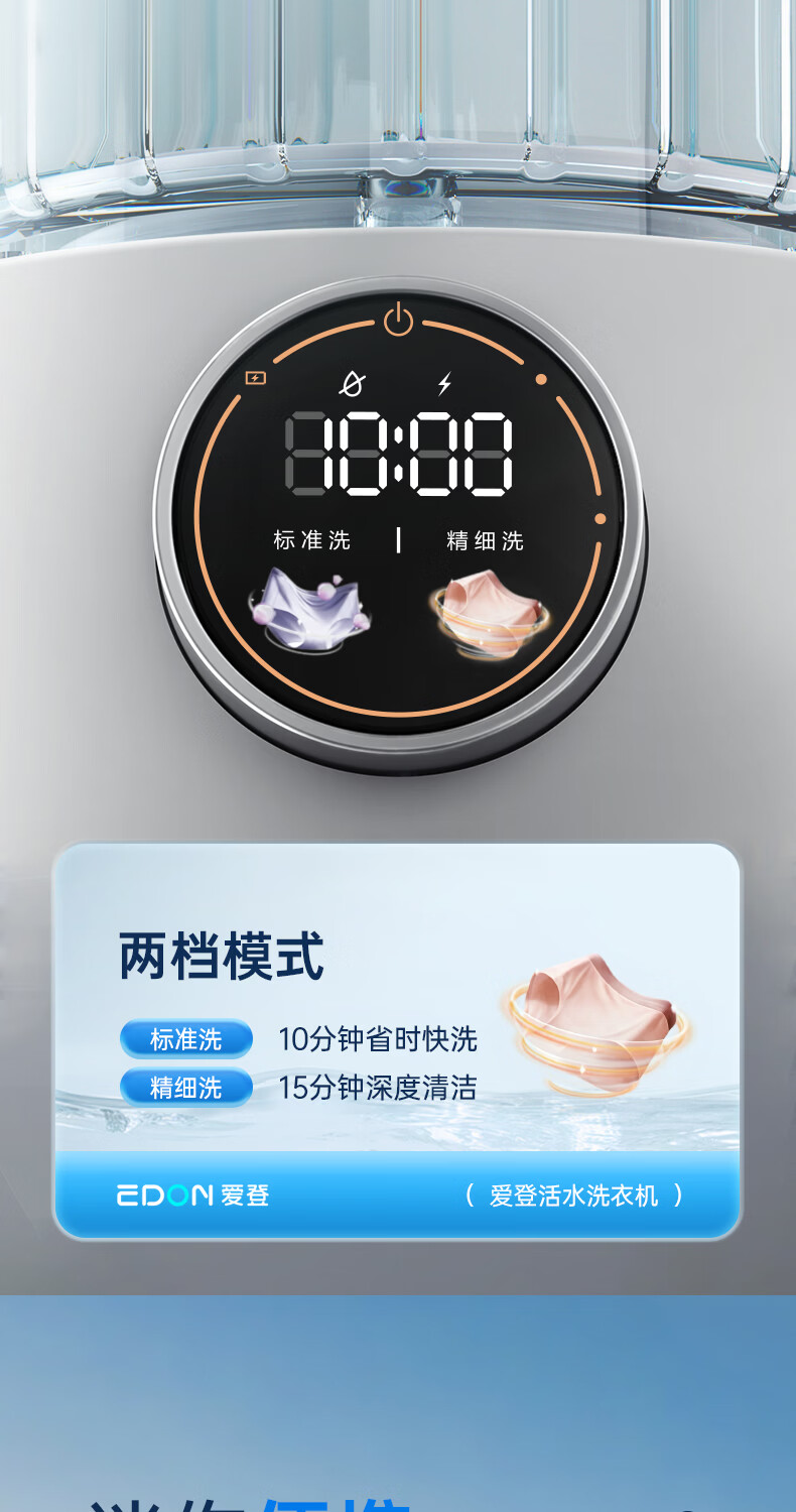 爱登(edon)活水洗衣机全自动迷你内衣内裤洗衣机小型便携洗袜子神器 流光白【一机双筒|自动换水|免接水管免安装】
