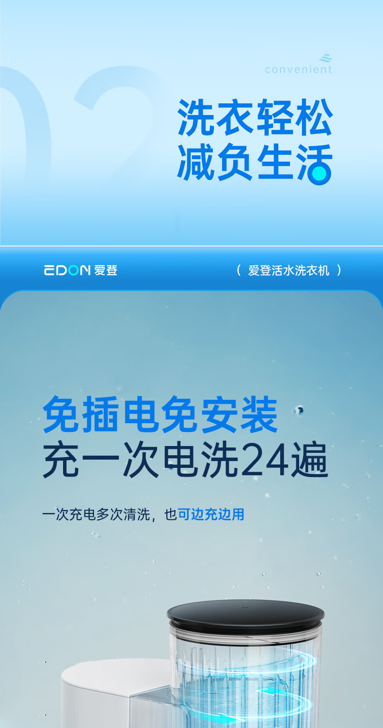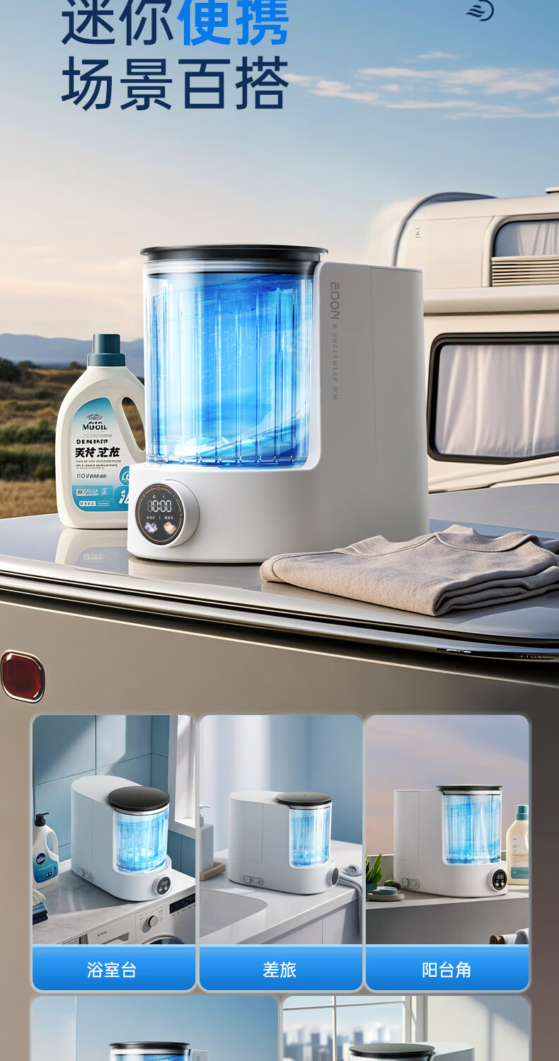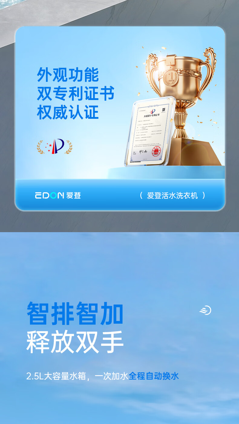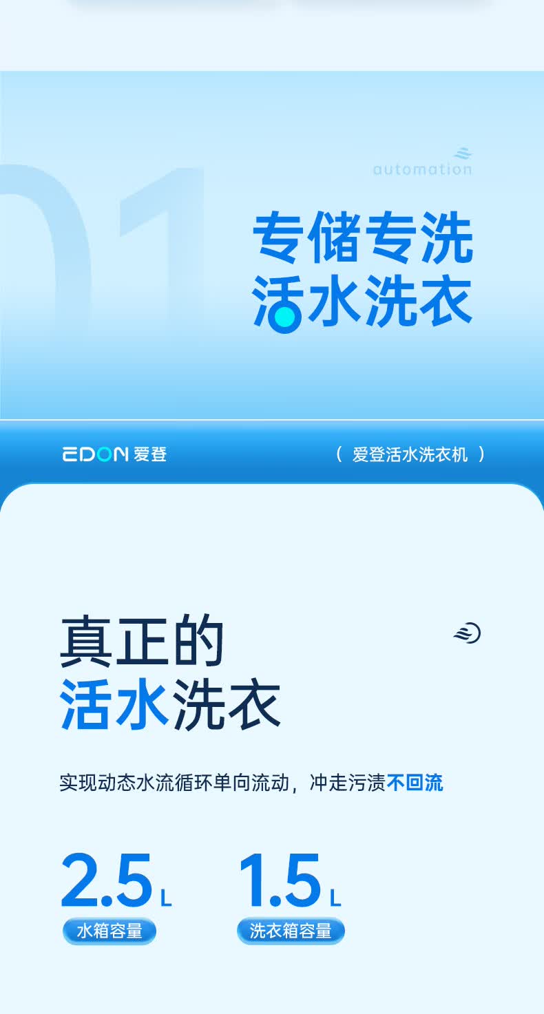 爱登(edon)活水洗衣机全自动迷你内衣内裤洗衣机小型便携洗袜子神器 流光白【一机双筒|自动换水|免接水管免安装】