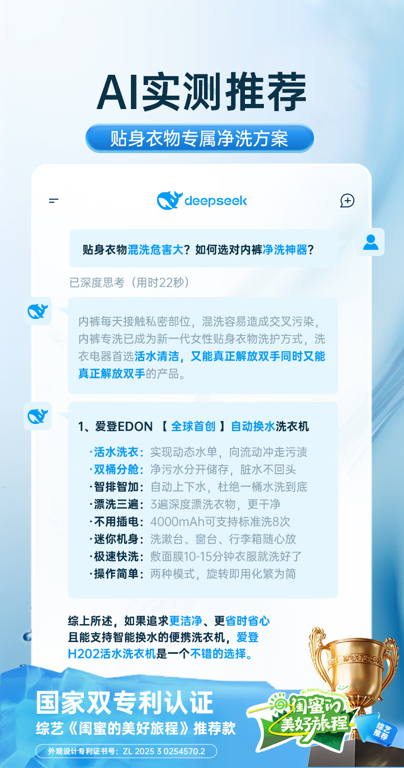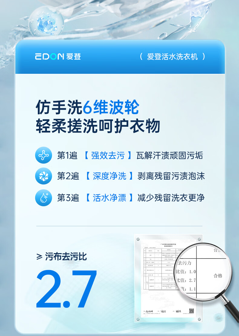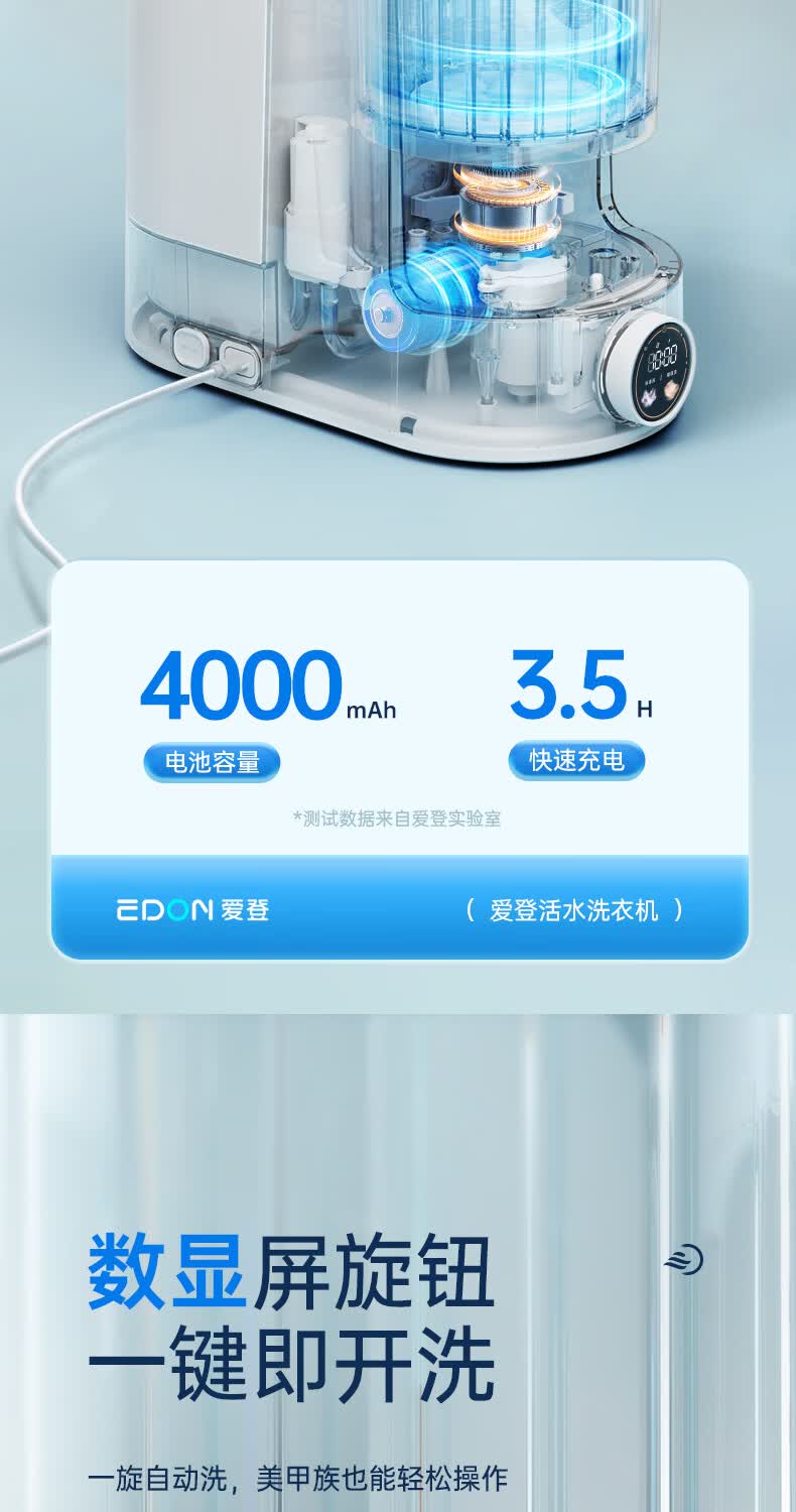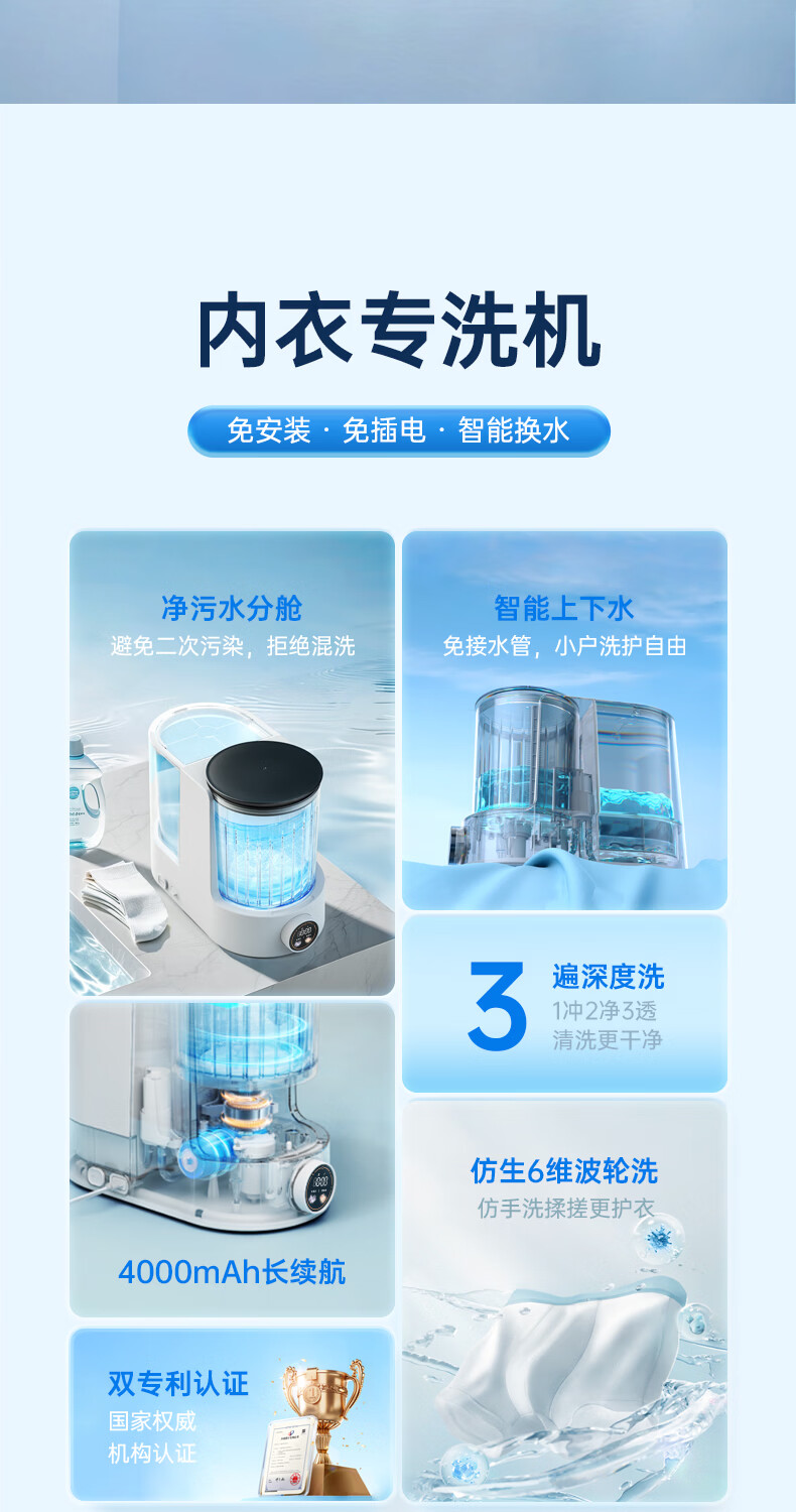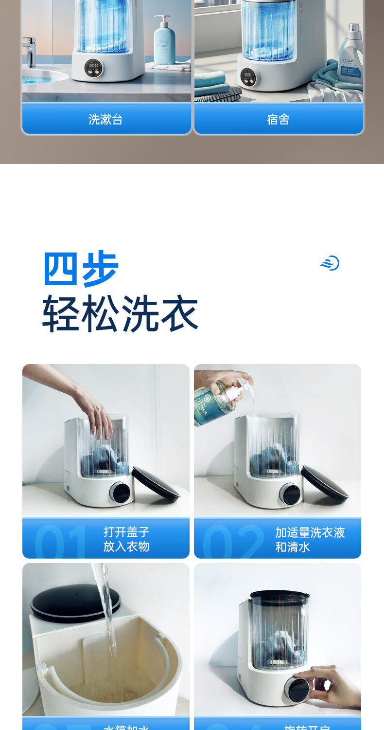爱登(edon)活水洗衣机全自动迷你内衣内裤洗衣机小型便携洗袜子神器 流光白【一机双筒|自动换水|免接水管免安装】
