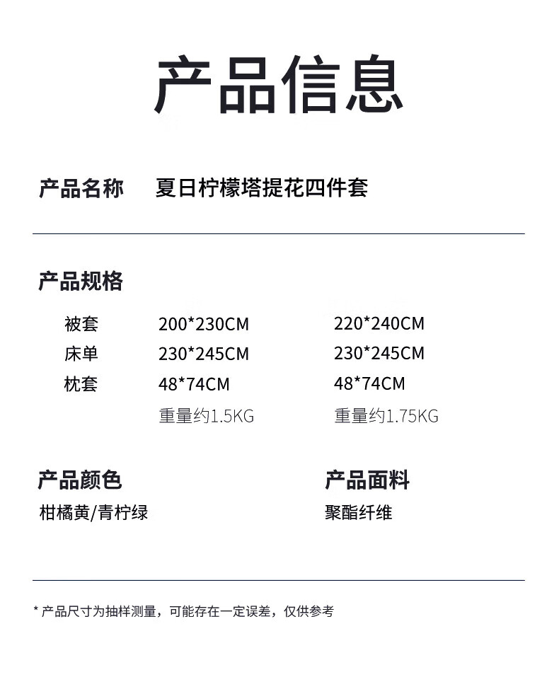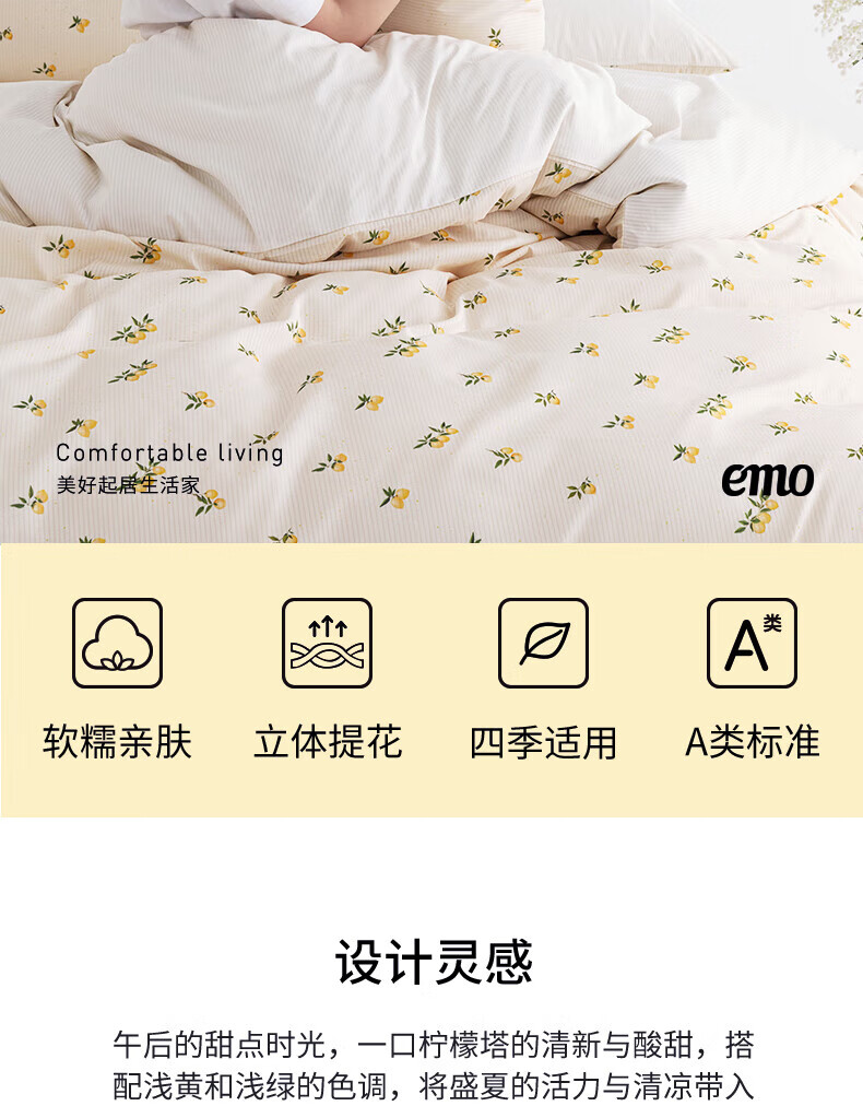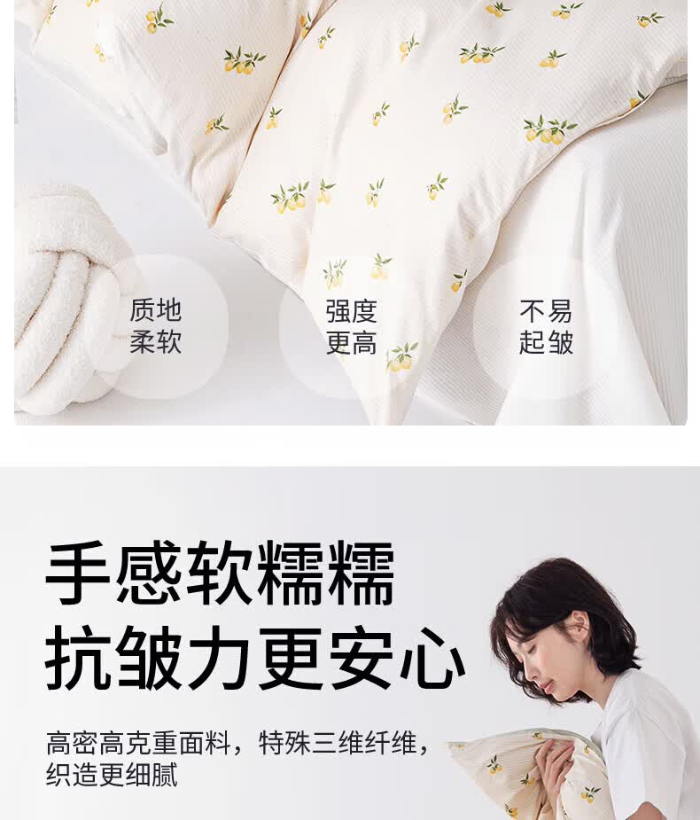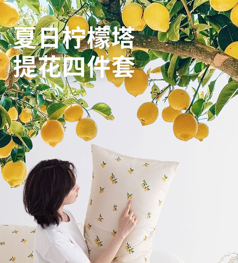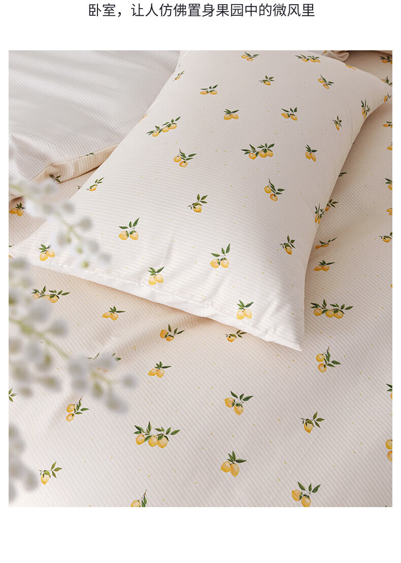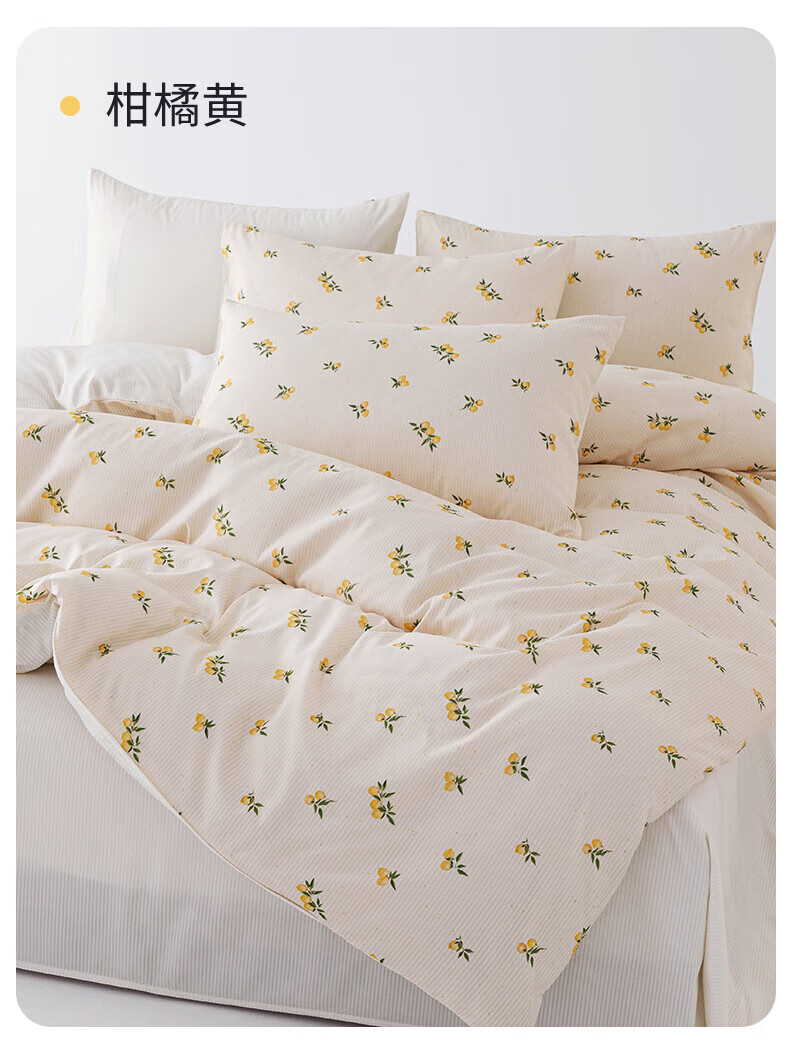 一默四件套四季被套床单枕套居家宿舍双人A类夏日柠檬塔提花四件套装 柑橘黄 床单款 (被套200*230cm) 四件套