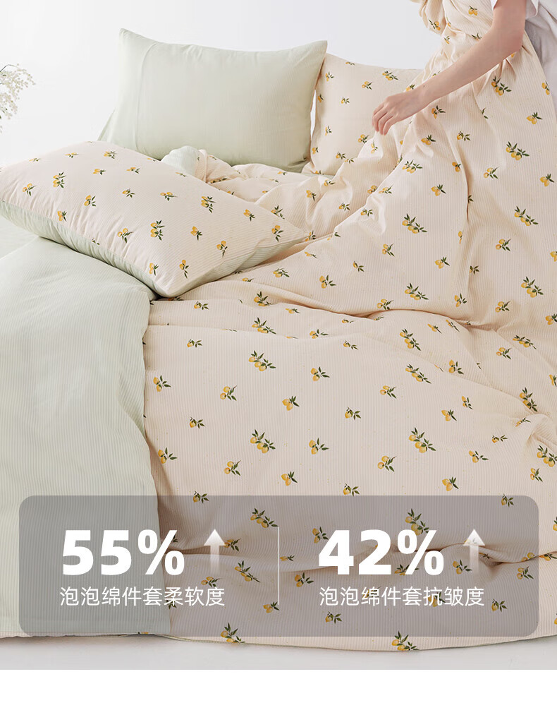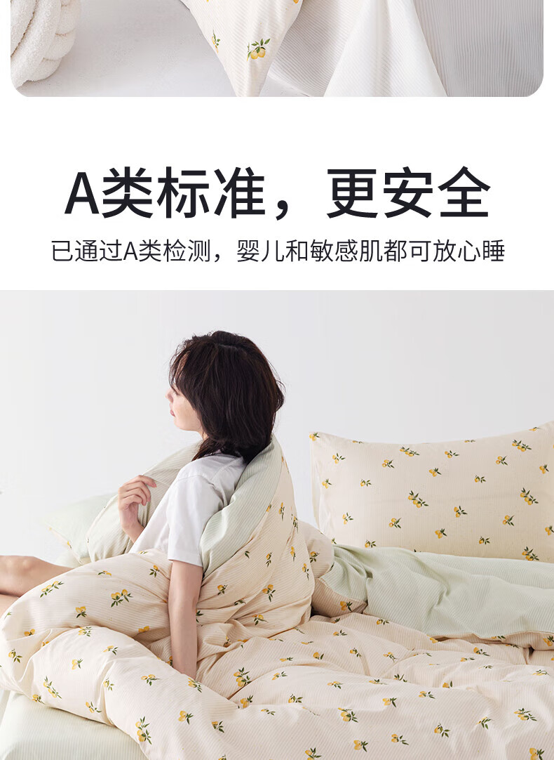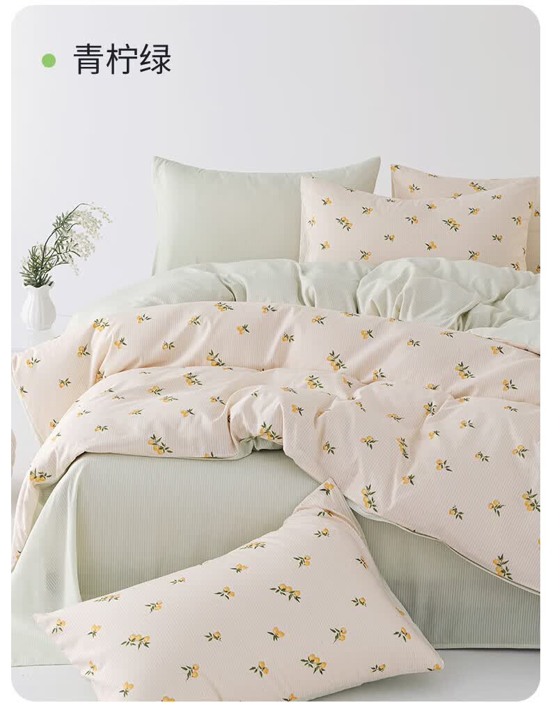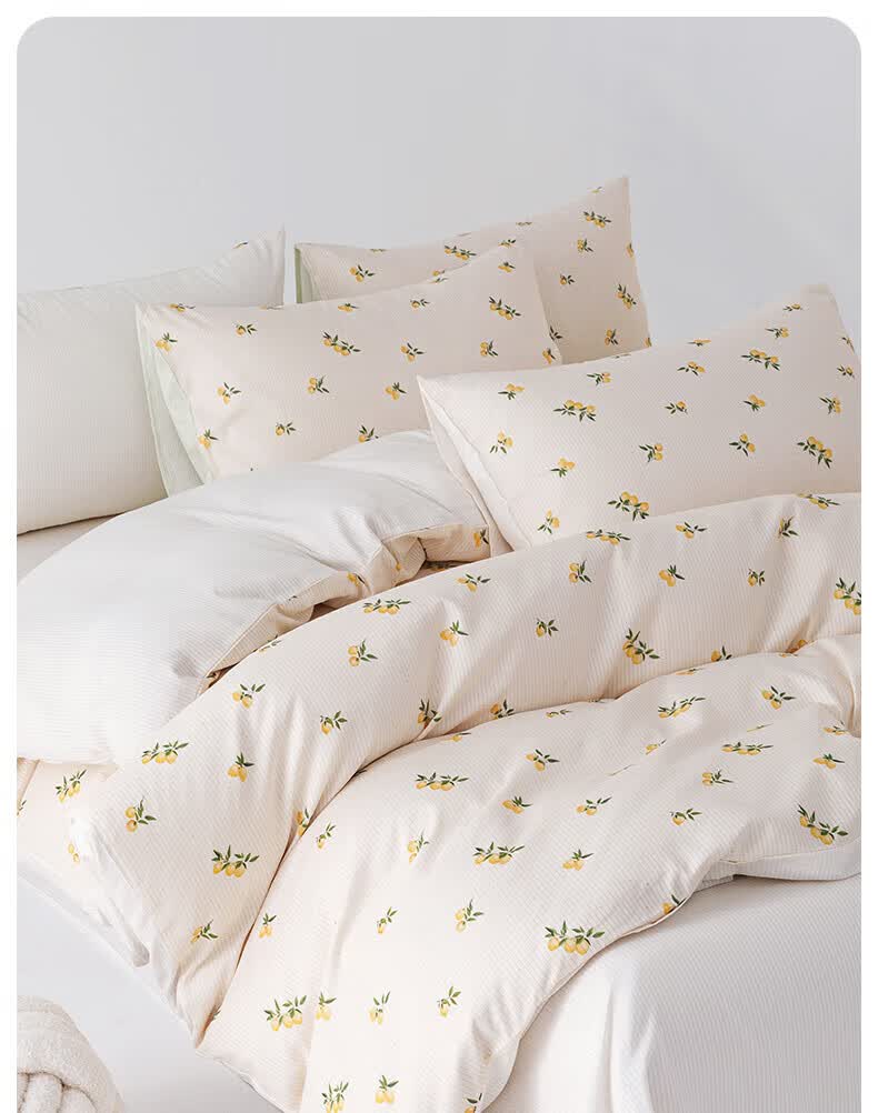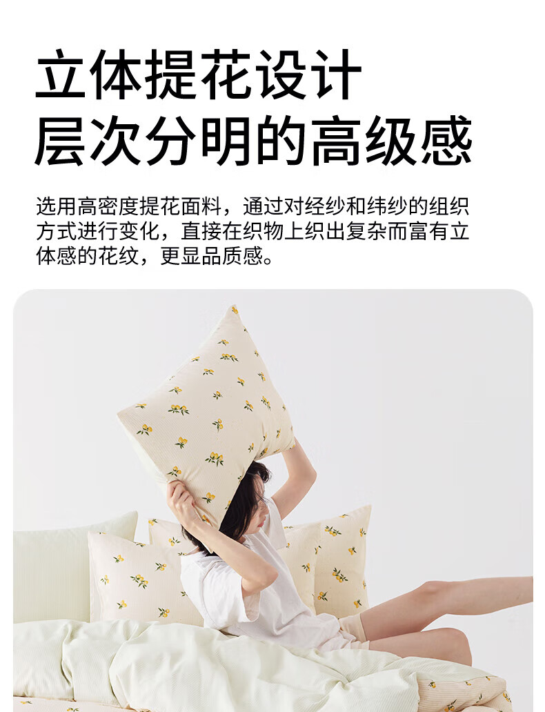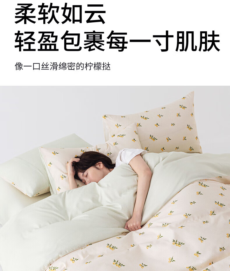 一默四件套四季被套床单枕套居家宿舍双人A类夏日柠檬塔提花四件套装 柑橘黄 床单款 (被套200*230cm) 四件套